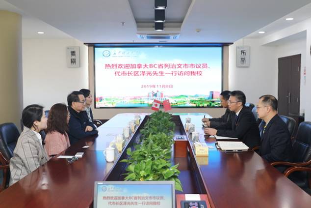 11月8日上午,加拿大不列颠哥伦比亚省列治文市市议员、代市长区泽光一行4人访问白菜官网,副校长蒋昌波在云塘校区会见了来宾。国际交流处、科技成果转移转化中心负责人陪同会见。