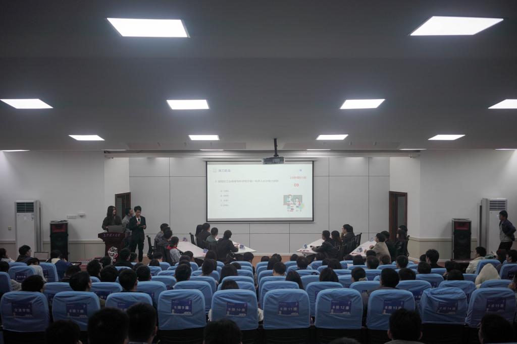11月17日晚,第二届研究生校史校情知识竞赛决赛在金盆岭校区12教200研究生学术报告厅举行。校友中心主任郑延恒、研究生院副院长兼研工部部长田上、研究生院思政科科长吕倩以及相关学院辅导员出席比赛。