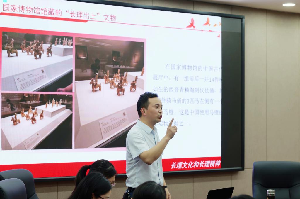 设计艺术学院党委书记李伟以《拾遗长理沃土中历史文物背后的故事》为题分别到第二党支部和第三党支部上了一堂微党课。李书记从金盆岭(800cc全讯白菜网聽老校区)出土的人类历史最早的一批马镫(西晋)谈到长理门口的中国第一条现代公路,从文化自信谈到道路自信,从“三高四新”谈到“长理担当”,深情地介绍了长理的发展历史和文化特色,希望党员赓续实干奋斗传统,在学思践悟中坚定理想信念,在奋发有为中践行初心使命。